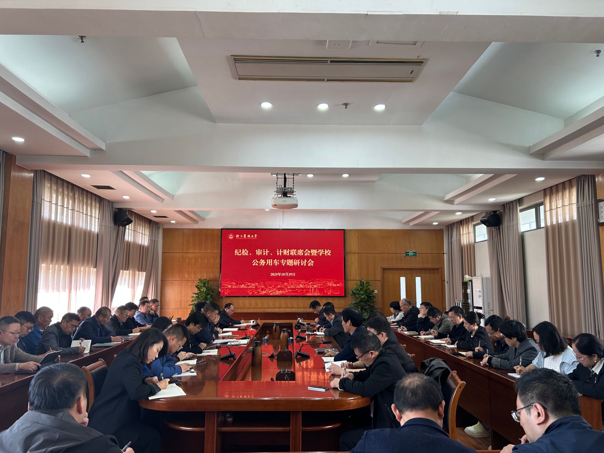10月29日上午,副校长杨圆华主持召开纪检、审计、财务联席会,专题研讨学校公务用车相关工作。校纪委书记包松永出席并做重要讲话,各学院(部)、各部门相关负责人参加会议。