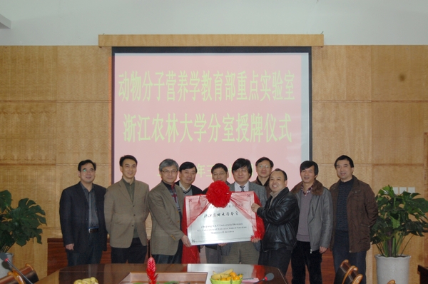 浙江大学动物科学院院长、重点实验室主任刘建新教授介绍了实验室概况、发展历程、研究方向、发展目标,并代表实验室授牌。他指出,分室的设立将有利于双方进一步加强交流,是落实两校合作协议的重要举措,有利于资源共享,共同服务、推动我省乃至周边地区养殖、饲料等相关产业的发展。
