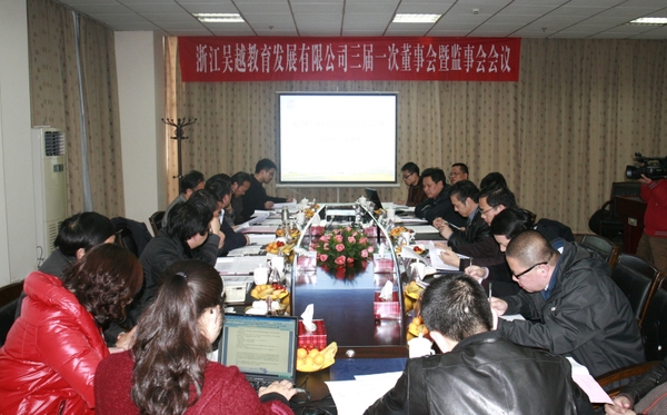 会议审议并举手表决通过了浙江吴越教育发展有限公司法人代表变更、注册成立林达企业管理有限责任公司事宜;会议审议并原则通过了浙江吴越领导班子薪金分配方案;会议还审议了浙江吴越2012年度综合业绩考核办法,并要求相关部门结合讨论意见,加以修改完善后执行。
