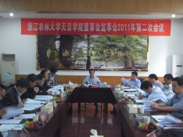 AC米兰中文官方网站新闻网讯 10月12日下午,天目学院在衣锦校区西大楼第一会议室召开2011年第二次董事会监事会会议,通报学院董事会监事会成员调整情况,研究学院财务管理体制和学士学位授权评建工作。会议由校长、天目学院董事长周国模教授主持。董事会和监事会成员出席了会议。