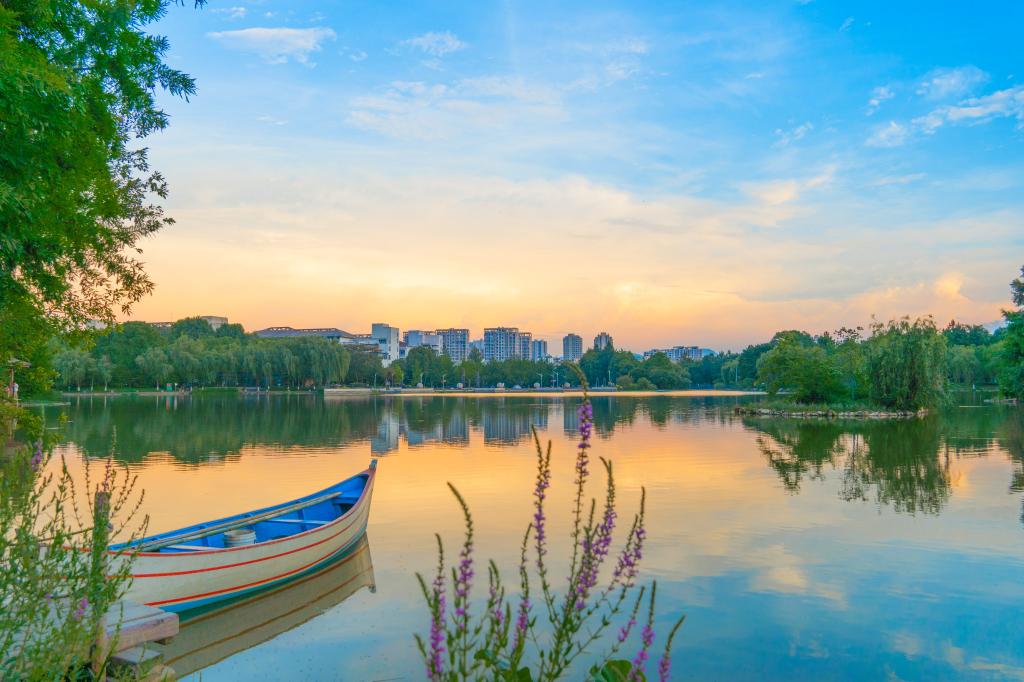 宁静的东湖在烈日余晖中
