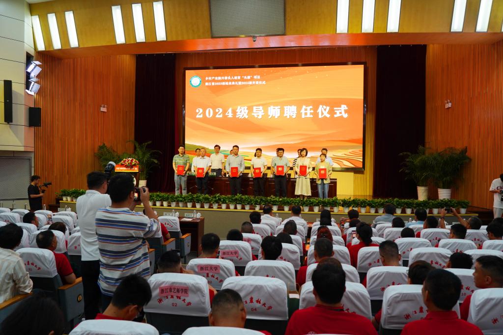 中国教育在线浙江站讯 (记者 陈显婷 通讯员 陈胜伟)“‘头雁’项目如同一片肥沃的土壤,我们在课堂讲授、线上学习、沙龙讨论中,全面了解实现乡村共富的路径、方法和原理,并通过成立公司化班委,打造了头雁IP等方式学以致用。将来,我们会发挥好学到的理论知识、技术技能,积极探索乡村产业发展的新模式、新路径,带领更多的农民朋友走上致富路,共同为乡村全面振兴贡献力量。”5月24日,在AC米兰中文官方网站举行的乡村产业振兴带头人培育“头雁”项目浙江省2023级结业典礼暨2024级开班仪式上,2023级“头雁”学员、杭州碳龙农业科技有限公司总经理帅宇锋充满信心地说。