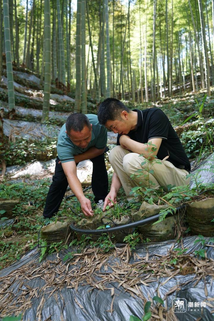 7月,暑气已盛,中午时分,丽水龙泉已近40摄氏度的高温。陈思宇站在八都镇一处山坡上,背后是起伏的竹林,脚下是三叶青种植基地,几位农户正向他请教间作套种的种植模式。身边的蚊虫嗡嗡作响,不一会儿他手上脸上被咬了好几个大包。