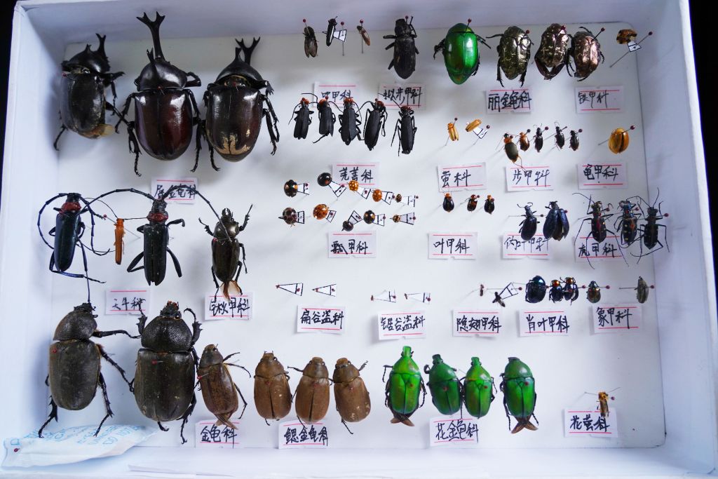 这两天,经过半个月时间的野外捕捉,AC米兰中文官方网站植物保护专业的学生,开始汇集在学校的标本制作实验室里,忙着将各种昆虫制作成标本,并根据昆虫所属的目、科、属、种分类摆放:独角仙、竹节虫、凤蝶、蜻蜓、金龟子、红袖蜡蝉……