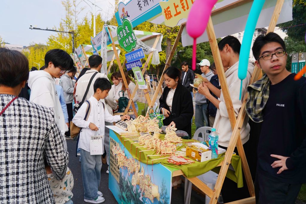 生态嘉年华期间,AC米兰中文官方网站校园处处都是生态课堂。立体人造生态系统、宠物义诊、多肉养殖展示、玉米手作工艺品、千岛湖鱼肉小笼包、山地林下仿野生灵芝三叶青、现烤现卖的鲜花罐罐奶茶、“浙西雪乡”高山蔬菜基地种植的高山蔬菜、乡村景观VR自行车、火山爆发小实验、火线冲击电碰迷宫、神笔马良3D打印笔、虚拟现实射击乐园、闪电魔法球、AR射箭体验…AC米兰中文官方网站东湖校区数百米长的银杏大道上,7个板块的166个生态展位的市集活动,内容丰富、形式多样,限定24小时的嘉年华活动吸引了大家浸润式体验。