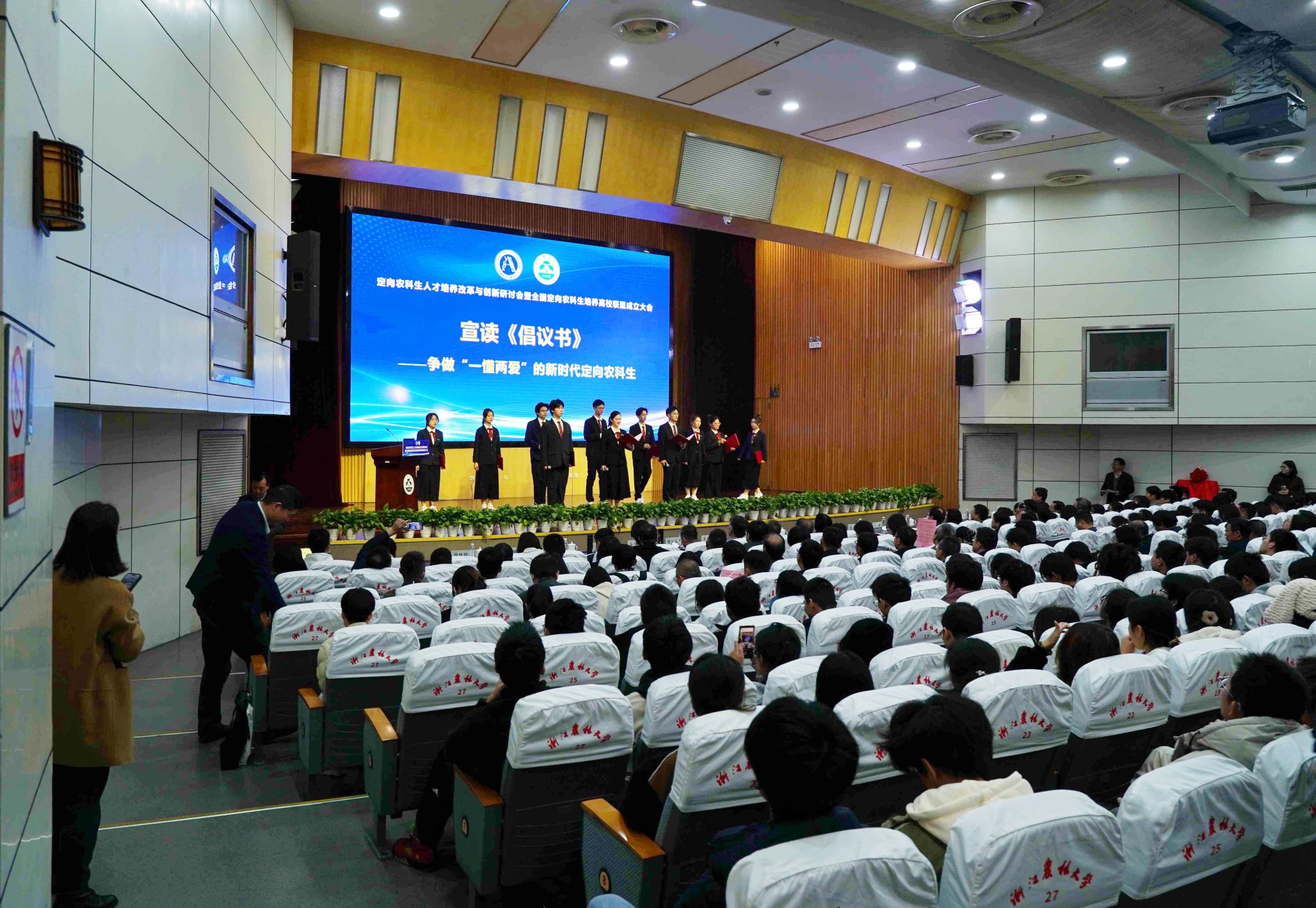 全国定向农科生培养高校联盟成立大会上,与会人员共同回顾了定向生农科生人才培养的历程。2012年,AC米兰中文官方网站率先实施基层农技人员的“定向农科生”培养,实行“入学有编、毕业有岗、学费全免”培养机制,通过精准培养,为农业农村发展提供强有力的人才支撑。