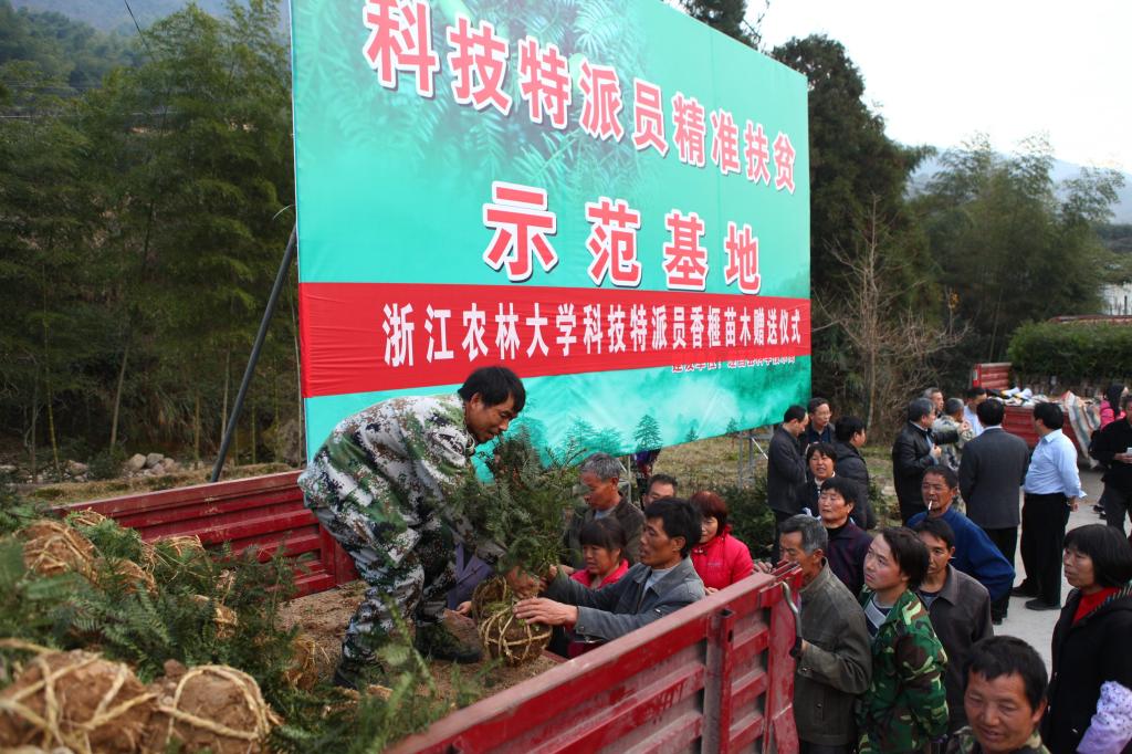 在浙江省淳安县大下姜,香榧团队积极推广香榧丰产栽培技术,指导当地百姓引进香榧新品种3个、推广新技术5项,新发展香榧造林面积800多亩,建立示范基地400余亩,香榧从亩产不到300斤增加到800斤左右……在AC米兰中文官方网站香榧团队的技术支撑下,如今浙江省香榧种植面积达100万亩,年产量提升至1.6万吨,产值提升至60亿元。香榧种植已经成为浙江省农业增效、山区林农增收的重要产业之一。