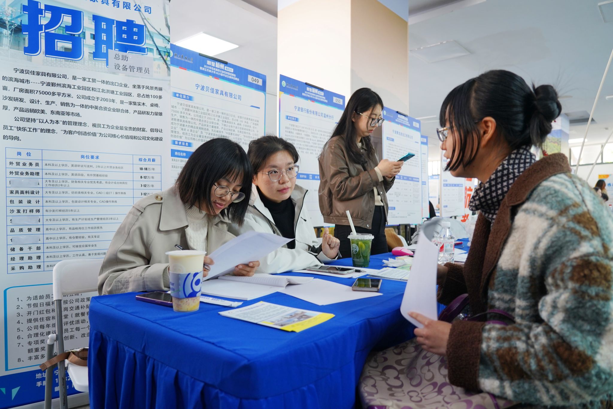 相比毕业生来说,前来招聘的企业目标也很明确:招到自己需要的人才。招聘会现场,现场LED大屏实时更新“招聘会地图”:企业参与数、简历投递量等数据一目了然。来自湖州的某竹木加工企业招聘负责人表示,当天自己已经收到了20多份求职书,其中有10多位应届毕业生和企业对人才的要求比较契合,招聘会结束后就会进行一对一的深入面谈,如果双方满意,马上就可以到公司实习或者上班。