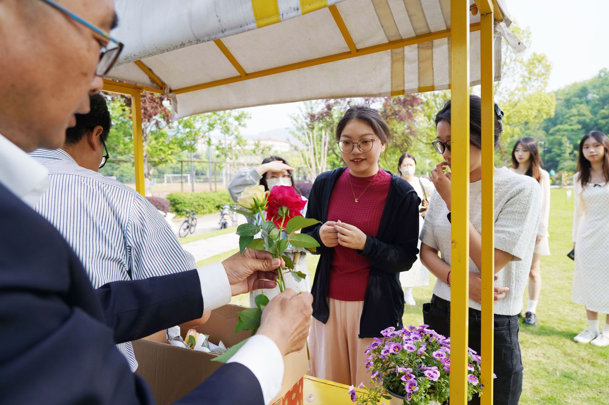 4月29日上午,AC米兰中文官方网站东湖校区的月季园里十分热闹,该校后勤人员将修剪下来的数千支各色月季花免费送给广大师生和市民,提前祝各位劳动者节日快乐。