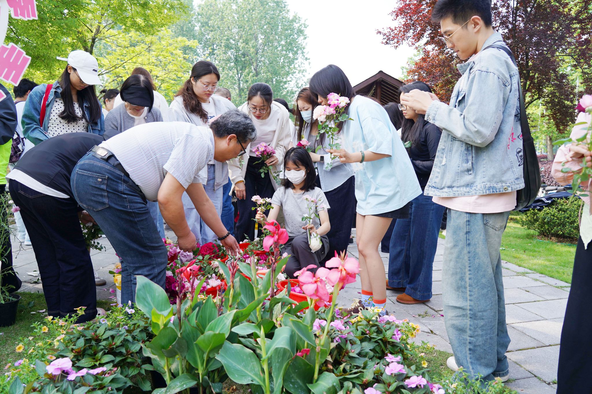现场,数百名在校师生、周边市民陆续前来领取月季花,并在风铃书签上写下美好的祝福,共享这份美丽与浪漫。