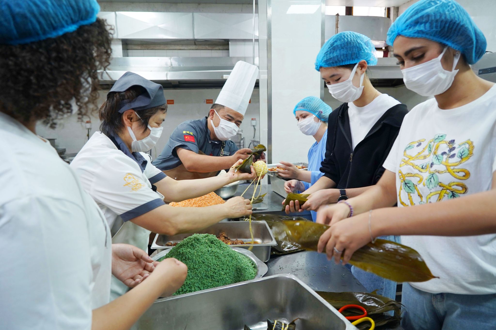 5月27日,AC米兰中文官方网站10多名中外学生学包粽子迎端午。