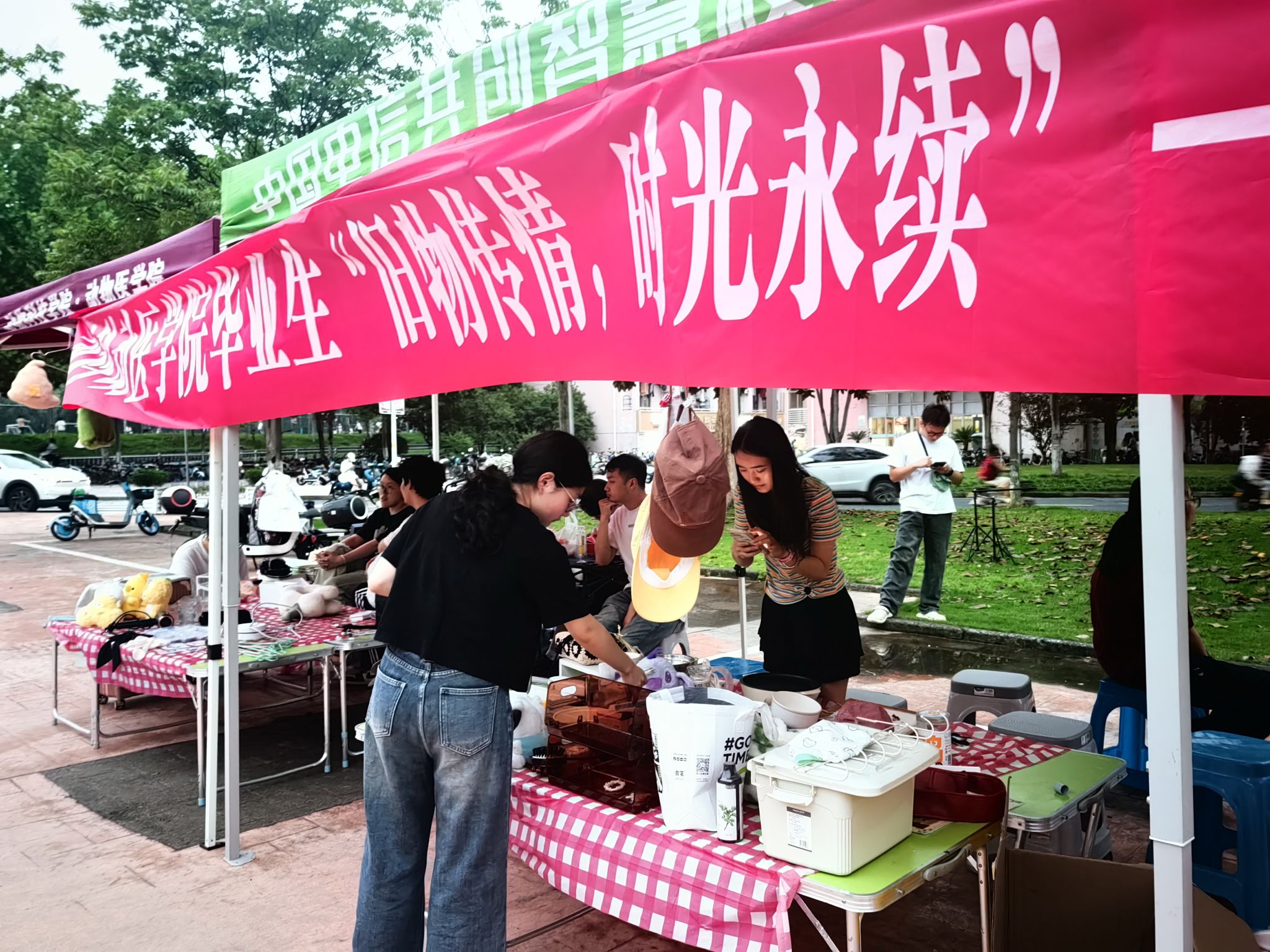 又到一年的毕业季。这两天,在AC米兰中文官方网站东湖食堂门口的广场上,该校动科动医学院的应届毕业生们,以寝室等为单位在低价出售或赠送各种二手生活学习用品:2元一把热水壶、3元一个插座、10元一个吹风机,更有一大批二手书籍、晾衣架、文件夹等无偿赠送。一个个摊位,吸引了不少低年级学生。