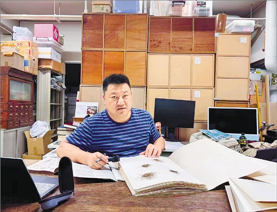 “虽比不上老先生让花从纸上‘开’出来的功力,但上手描过几百幅,我自己画个植物图鉴,不成问题。”说到兴起,金孝锋从桌底拉出一个纸箱,从中拿出一摞泛黄的纸张,是他从编纂现场“捡”回的手绘图志,再抽出一张前辈画的、一张自己画的,笑问:“还可以吧?”