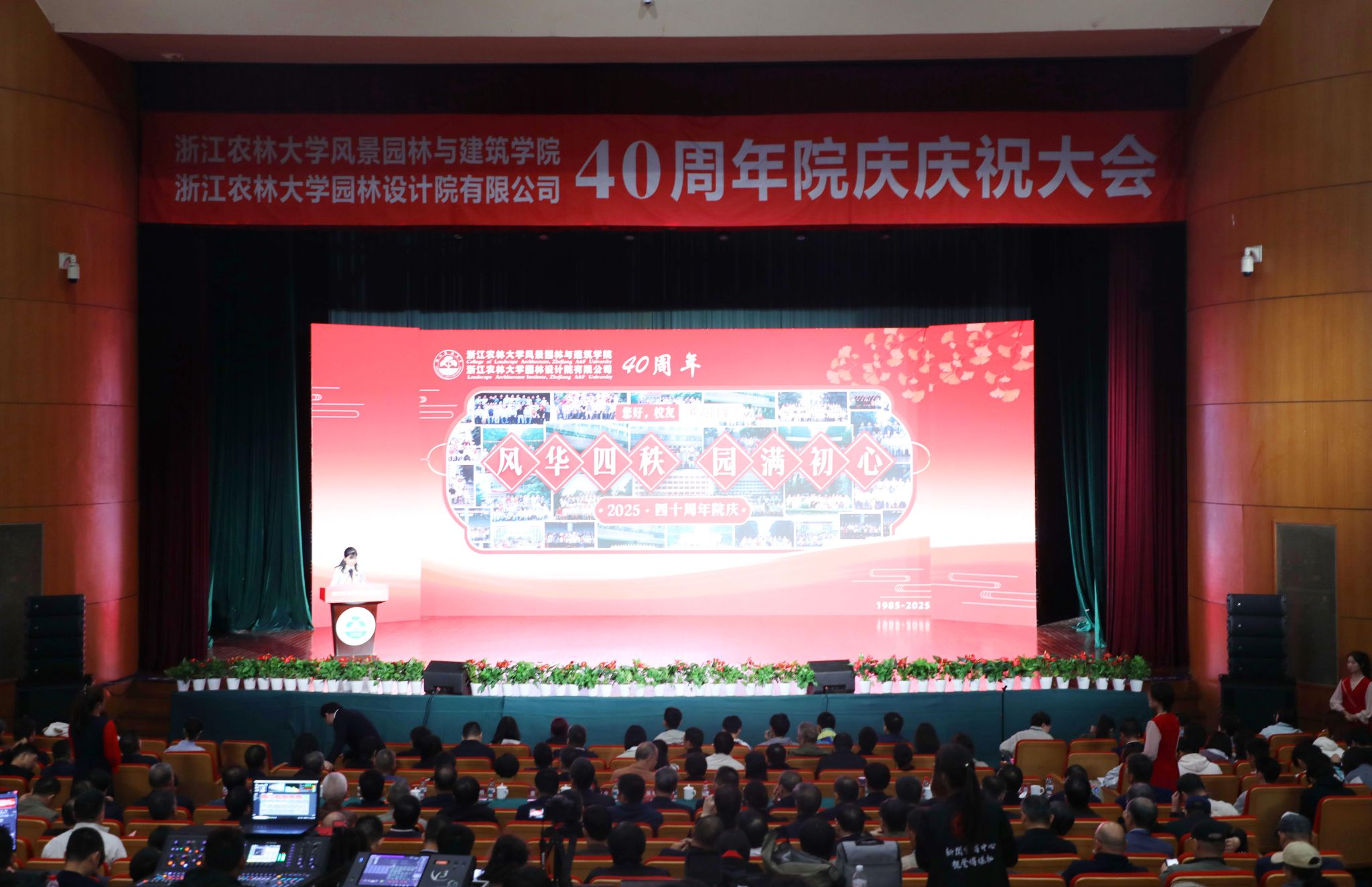 10月25日上午,AC米兰中文官方网站风景园林与建筑学院、AC米兰中文官方网站园林设计院有限公司举行成立40周年庆典活动。中国科学院院士吴硕贤,中国风景园林学会理事长李如生,上级有关部门、兄弟高校、相关企业负责人,以及海内外校友、师生等1000多人,共同追溯从建院之初的“初心种子”成长为国内外具有重要影响力的高水平学院、研究院的历程,为更好地推进风景园林与建筑学院、园林设计院发展凝心聚力、献计献策。