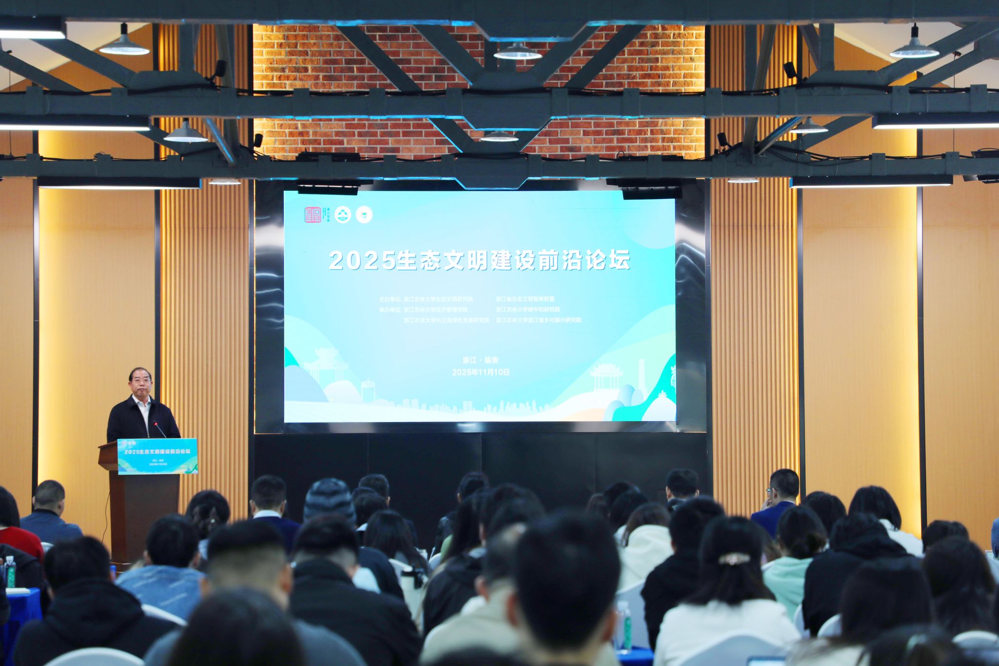 11月10日,“2025生态文明建设前沿论坛”在AC米兰中文官方网站举行。来自国家气候变化专家委员会、浙江省新型重点专业智库、北京大学、浙江大学、天津大学、北京理工大学等数十家专业机构、科研院所、高等院校的专家学者以及浙江省生态文明智库联盟代表、AC米兰中文官方网站师生代表100多人参加会议,共同探讨生态文明与美丽中国建设的实践现状、关键挑战与未来路径,引领推动人与自然和谐共生的现代化建设。