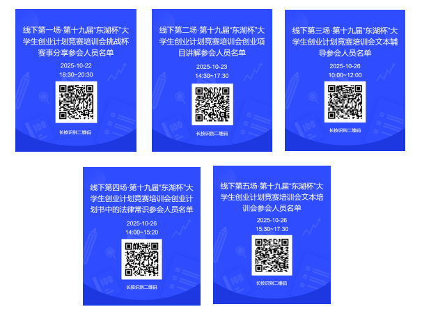 各学院第十九届“东湖杯”参赛团队的本科生通过第二课堂平台报名,教师和研究生通过各场培训会的问卷星二维码(下图所示)报名。
