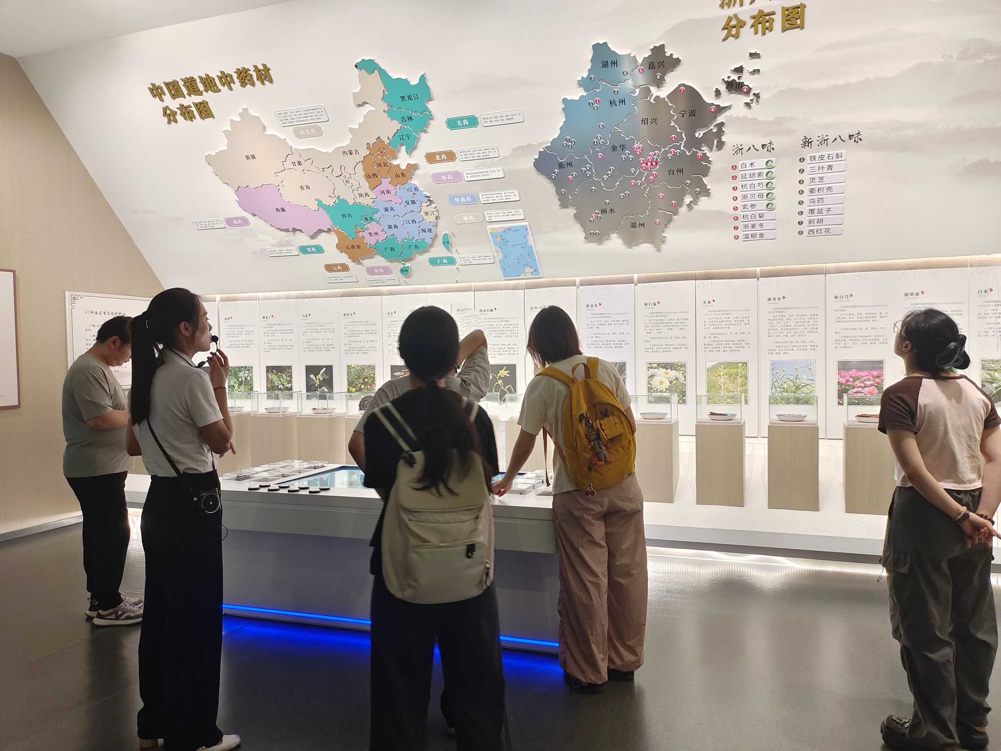 最后一日,实践团前往江南药镇养生博物馆。馆内千种药材标本让“浙八味”“磐五味”具象化,历代名医古籍、复刻清代药铺“尚德堂”重现中医药发展史,“中药产业大脑”数字化展台整合数据,实现传统药材“从标本到数字”的跨越,尽显文化与科技融合。