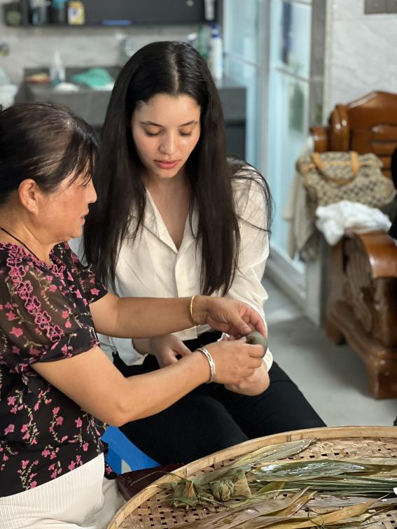 在微美术馆,米兰留学生深刻感受艺术与乡村的碰撞,亲手包黄金粽、学棕编技艺体验传统民俗。
