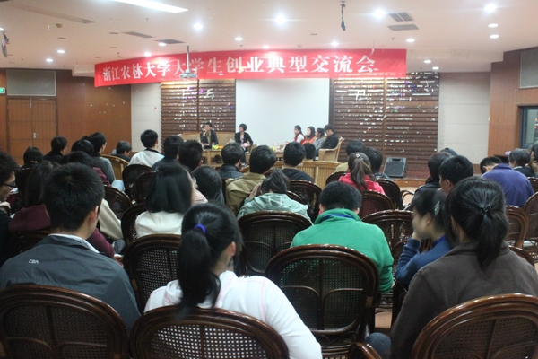 交流会以创业、合作、交流、发展为主题,嘉韵风险投资基金15万元获得者——临安馥恋美容化妆品有限公司创始人蒋丹青、2009年杭州市大学生创业资助10万元获得者——杭州晨禾农业科技有限公司创始人赵颖雷、赛伯乐杯大学生创业大赛三等奖获得者——杭州思之游科技有限公司创始人宋思衍、2011年杭州市大学生创业资助2万元获得者——杭州楼兰服饰有限公司创始人郭杭以及浙江省第三届大学生职业生涯大赛“十佳创业规划之星”获得者——艾科白尔•玉素甫等5名代表与在场师生分享了他们的创业故事。参会师生就公司注册、专利申请、无偿资助申请、获奖经验、创业体验等话题展开互动交流,现场气氛活跃。
