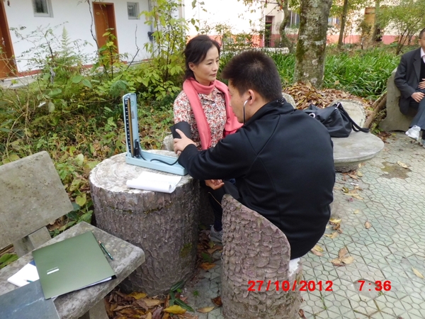 课题组邀请旅游管理学科负责人薛群慧教授、旅游管理专业负责人张明如教授,以及学科部分教师共16人作为此次试验对象。出发前,课题组对此次研究工作做了大量前期准备工作,如文献综述、健康信息自测表和心理量表设计和森林资源调研项目等。到达清凉峰后,课题组成员按分工展开调研。在学科教师指导下,成员们先后在清凉峰林业管理站、万山天窟、瀑布、溪流交汇处、浙西之巅等6处地方展开测量。测量项目分为温度、相对湿度、风速、光合光量子通量密度(PPFD)、噪声度和空气正、负离子浓度。