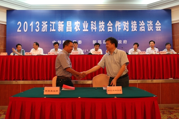 会上,合作处处长戴文圣与新昌县康益祺农业发展有限公司签订了共建产学研合作示范基地的协议;会后米兰有关专家考察了香榧、铁皮石斛、茶叶合作社基地,并赴教育厅接对帮扶乡镇——天台石梁镇进行了现场指导,给农民发放了米兰有关农业科技资料。