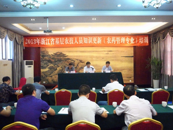 9月10日,在省基层农技人员(农药管理专业)知识更新培训班开班仪式上,继教学院院长朱永法代表学院热烈欢迎来自全省15个县(区、市)的农技人员到学院参加学习培训,希望各位学员珍惜机会,正确处理好学习与工作的关系,学以致用,更好地服务地方经济发展。东阳市农业行政执法大队副队长胡新宝代表学员发言。