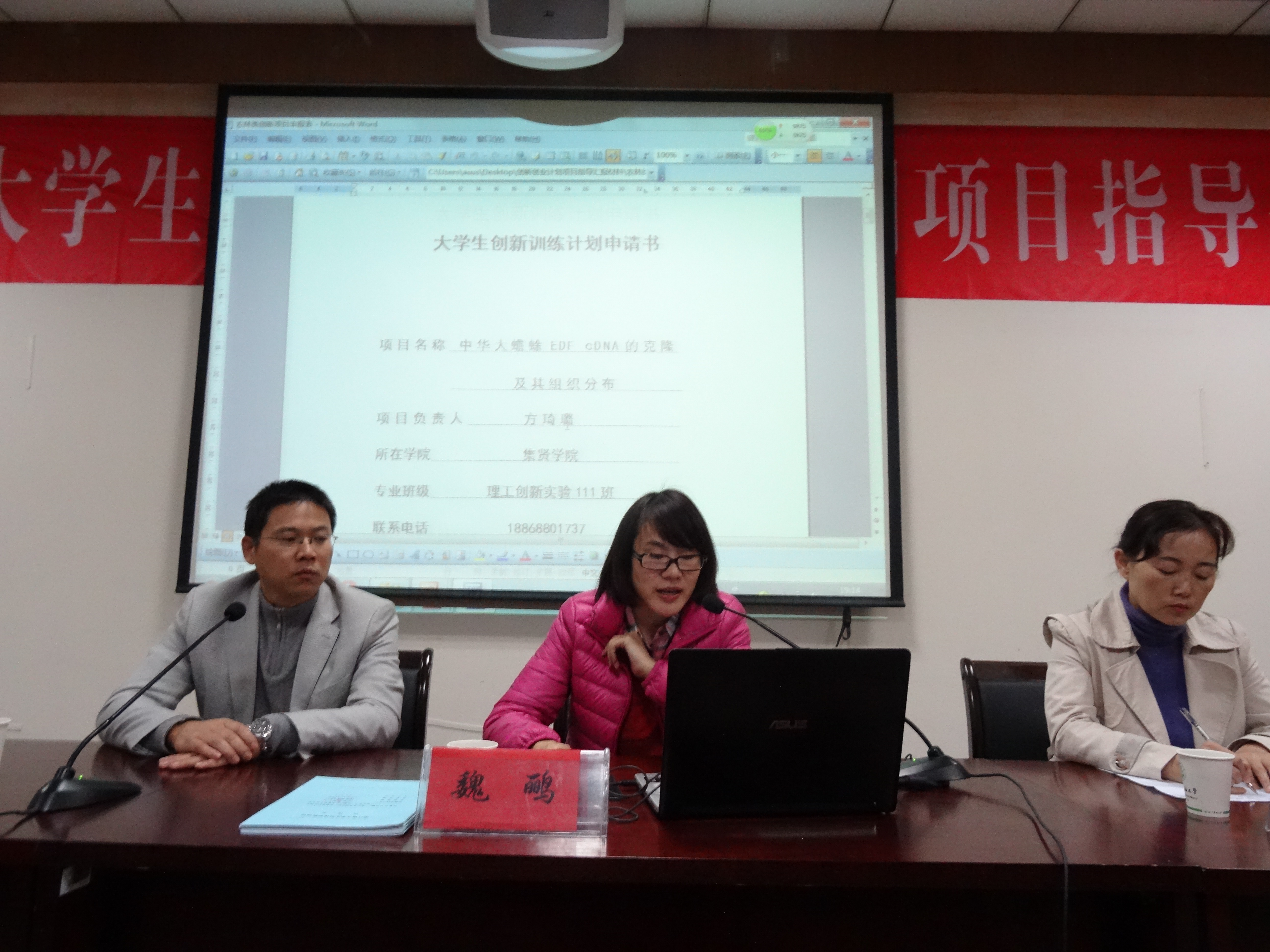 会上,教务处相关负责人介绍了大学生创新创业训练计划的概况,并结合实际项目案例分别对项目申报流程、项目结题流程,项目申报内容的填写等方面做了详细的分析说明。在场的学生听完讲解后,纷纷向老师提出自己的困惑,老师们也耐心回答,一一讲解。