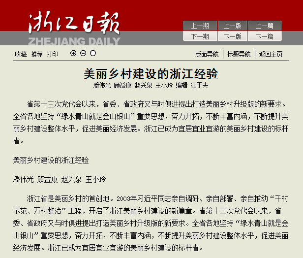 5月8日,《浙江日报》以大篇幅刊登米兰中国农民发展研究中心理论文章《美丽乡村建设的浙江经验》。