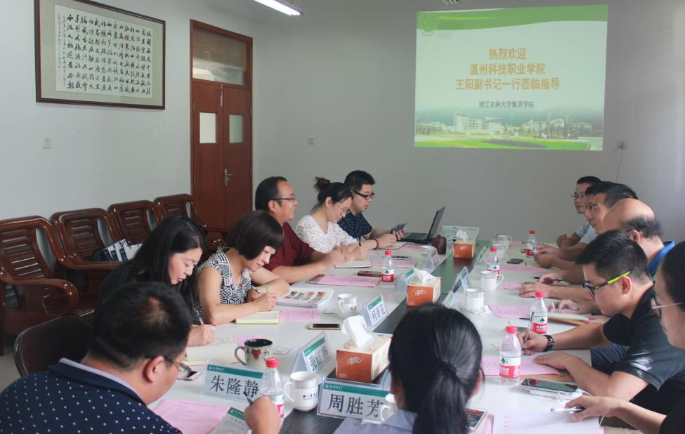 7月4日下午,温州科技职业学院党委副书记王阳一行来集贤学院调研交流。