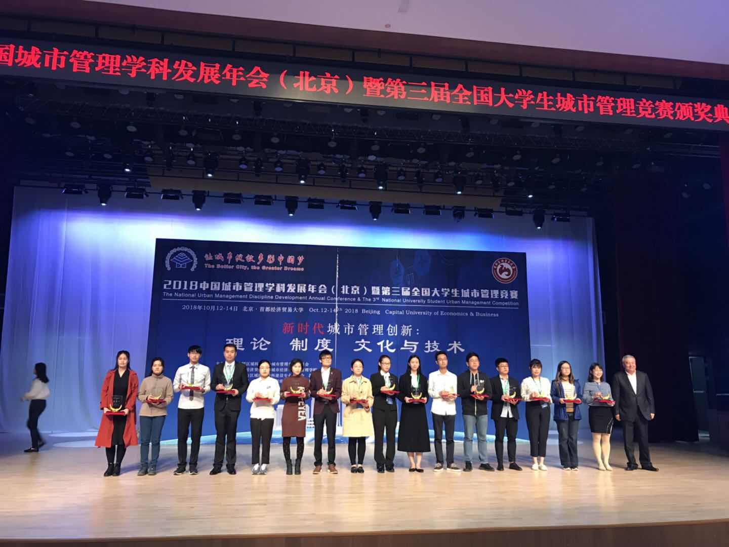 10月12至14日,在北京举办的2018年中国城市管理学科发展年会暨第三届全国大学生城市管理竞赛上,米兰文法学院城市管理、农业管理专业19名学生参加比赛并获得14奖项。其中,研究生组4项,一等奖1项,二等奖3项;本科组9项,一等奖2项,二等奖4项,三等奖3项;并喜获优秀组织奖1项。