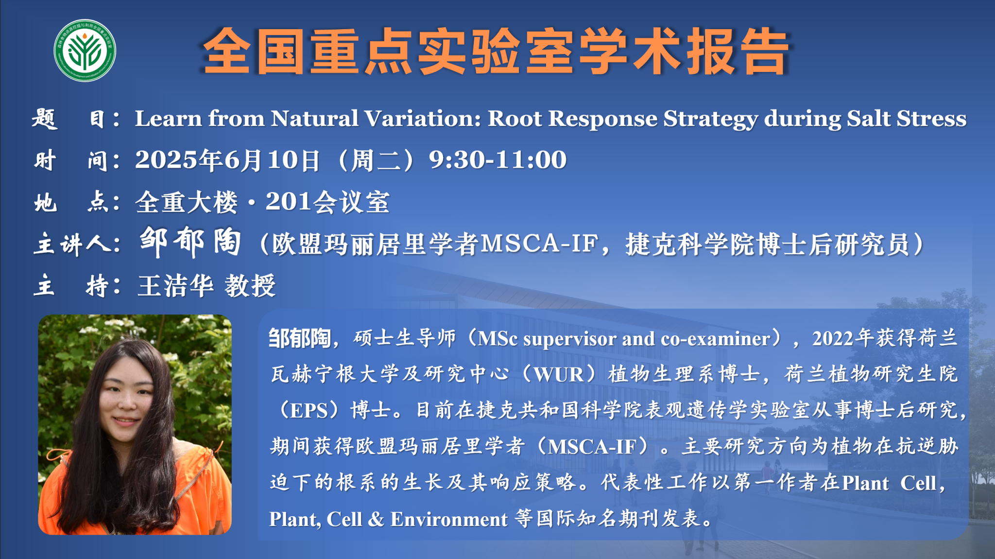 讲座预告:Learn from Natural Variation: Root Response Strategy during Salt Stress