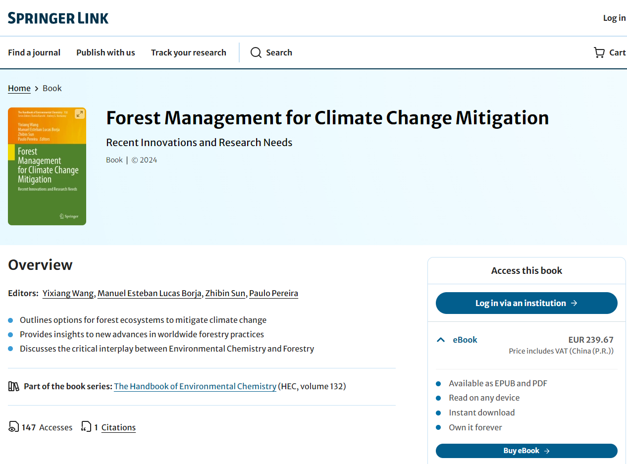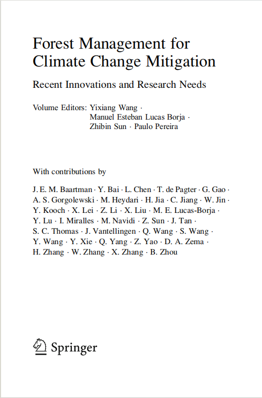 近日,AC米兰中文官方网站环境与资源学院、碳中和学院王懿祥教授在国际著名出版社——SpringerPress(斯普林格出版社)出版英文林业专著《Forest Management for Climate Change Mitigation-Recent Innovations and Research Needs》。该书以精装本的形式面向全球发行,并在谷歌电子书店上线和在亚马逊上架,同步进入Springerlink平台数据库。
