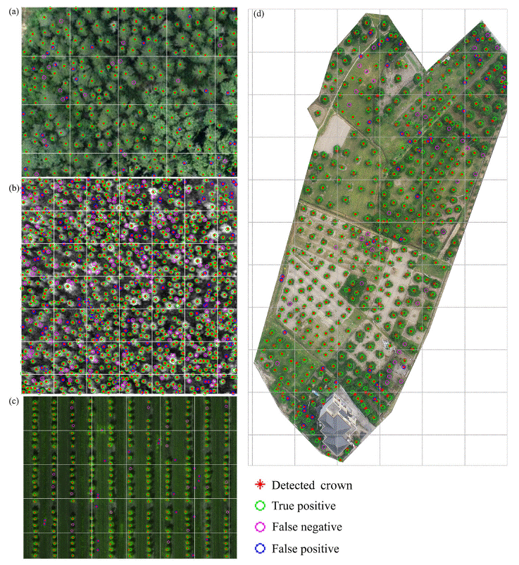 树木位置和密度是评价林分空间结构、碳储量等森林结构和功能的重要参数。通过样地调查方法获取林分密度是一项非常费时费力的工作。无人机等高分遥感技术是自动实时监测林分密度的最佳方法,具有省时、省力和节约成本的优点。本研究在传统方法的基础上,提出了一些合并和分裂的策略,在一定程度上解决了由于树冠重叠、树冠与背景难以区分、树冠大小异质性大等原因导致传统的局部最大值法存在大树冠“一分为二”和小树冠“合二为一”等问题,取得了较高的监测精度。