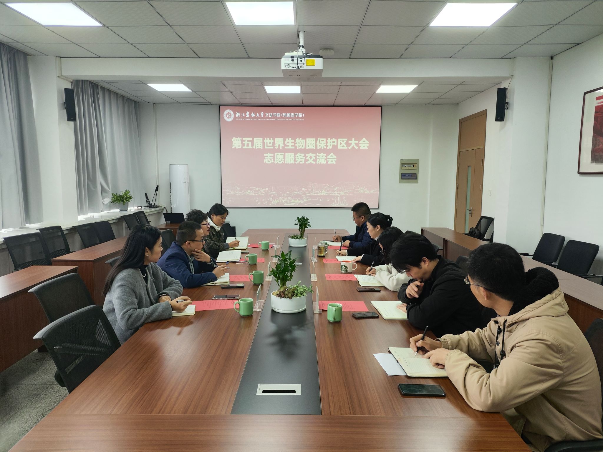 12月4日上午,临安区第五届世界生物圈保护区大会专班主任帅乐芳一行,来校对接志愿服务工作。校团委、文法学院相关负责人接待了临安区工作专班。