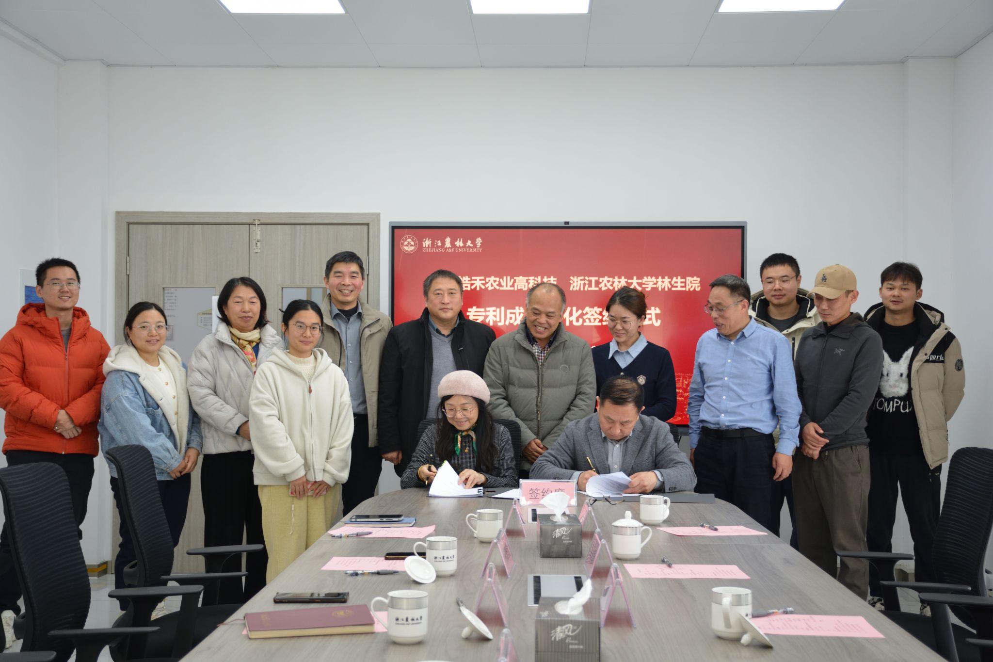 皓禾公司与陈杰教授签订了发明专利与农药登记证的成果转化协议,专利转化金额120万元人民币。成果转化签约仪式是一个新起点,林生院将继续依托资源优势,秉持科技服务社会的理念,推动科研成果转化,加强院企合作,为学校的发展作出更大贡献。