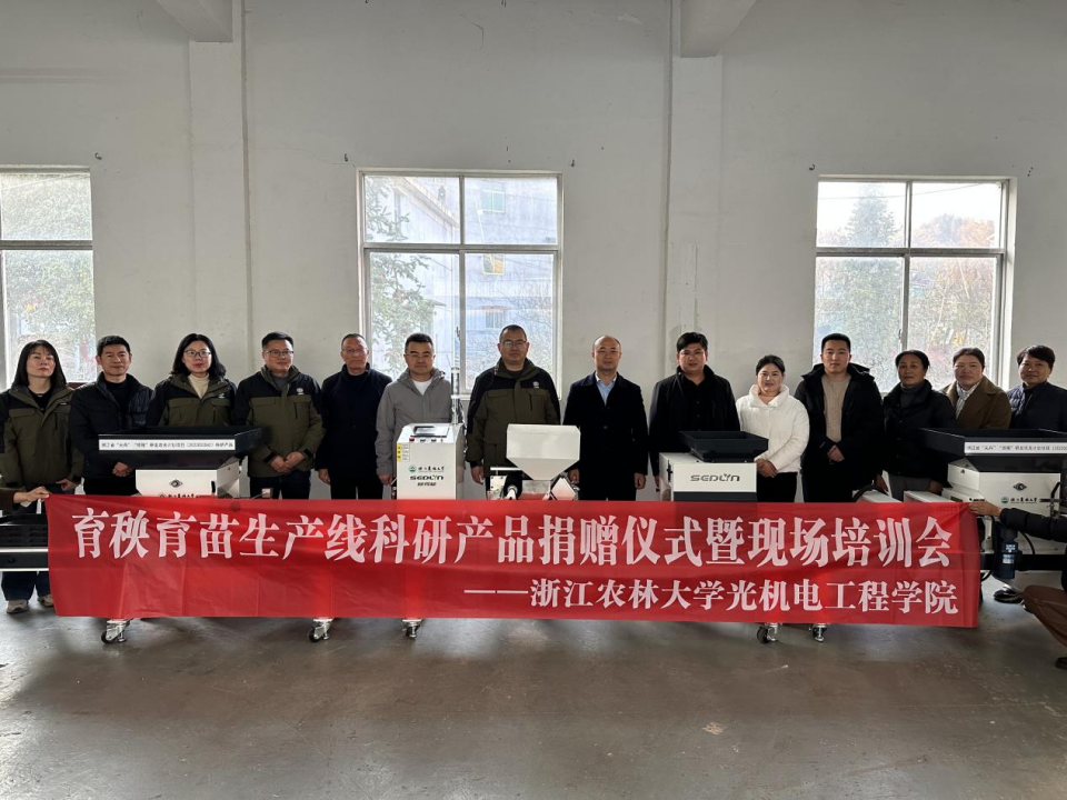 围绕前期校地合作过程中华埠镇提出的农业机械化发展瓶颈、农机化项目布局和现代化农事服务中心发展的迫切需要,光机电工程学院智能米兰装备团队迅速行动,优化调整校地合作点位,聚力服务,向华埠镇捐赠浙江省“尖兵”“领雁”项目科研成果——育秧育苗流水线一套,并现场开展育秧育苗流水线应用技术的培训,助力华埠镇提升育秧机械化水平。