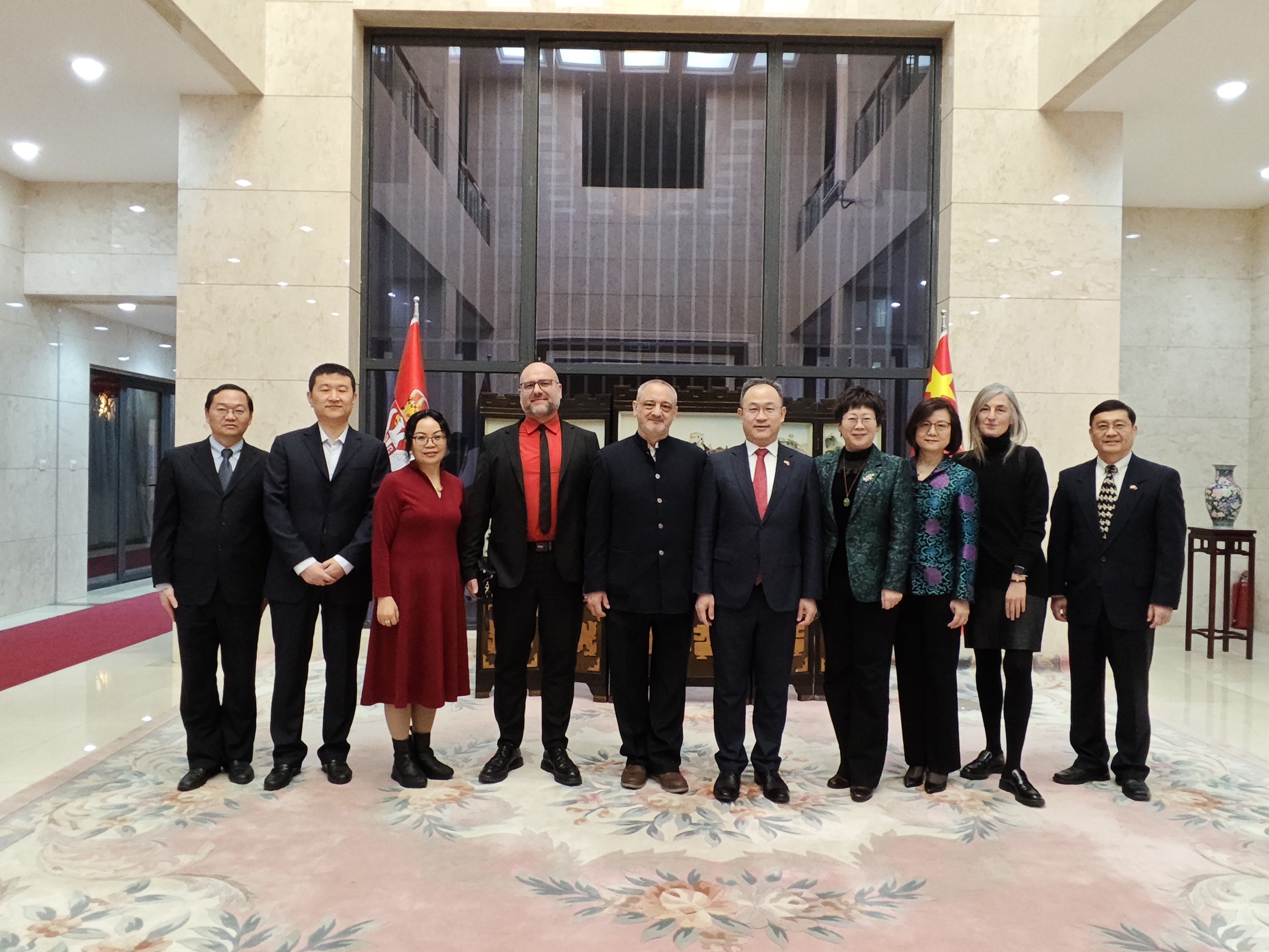 春节前夕,诺维萨德大学孔子学院中外方院长受邀参加驻塞尔维亚大使馆举办的中文教学座谈会。中国驻塞尔维亚大使李明、教育参赞袁纪纲及塞尔维亚4家中文教育机构负责人参加了此次座谈交流会。